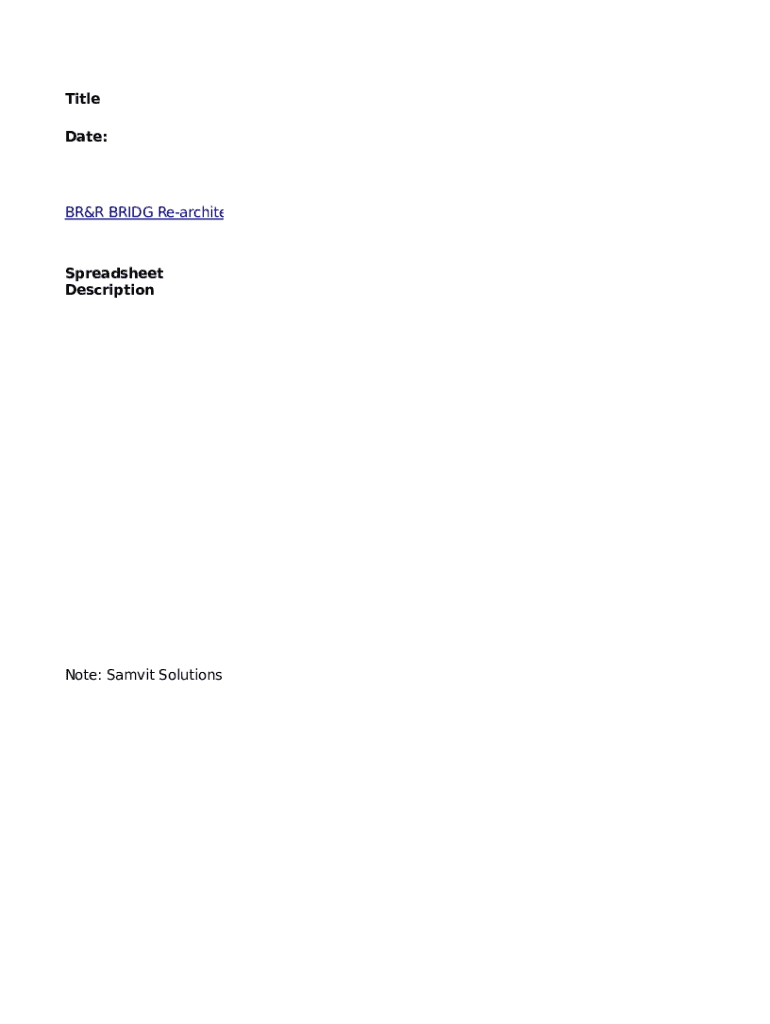 Title Date:BRR BRIDGE Re architecture and Usability SubgroupSpreadsheet DescriptionNote: Summit Solutions led and performed this effort under the FDA Grant: Architectural Review of their STU3 ResearchStudy