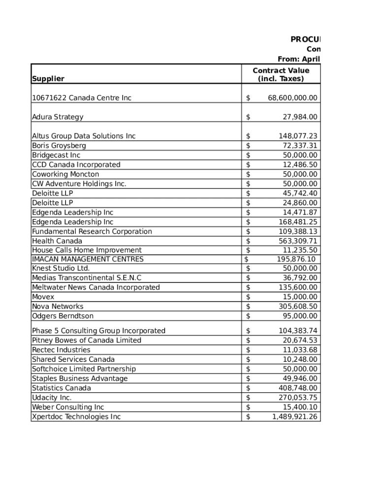 PROCUREMENT ACTIVContracts Over $10