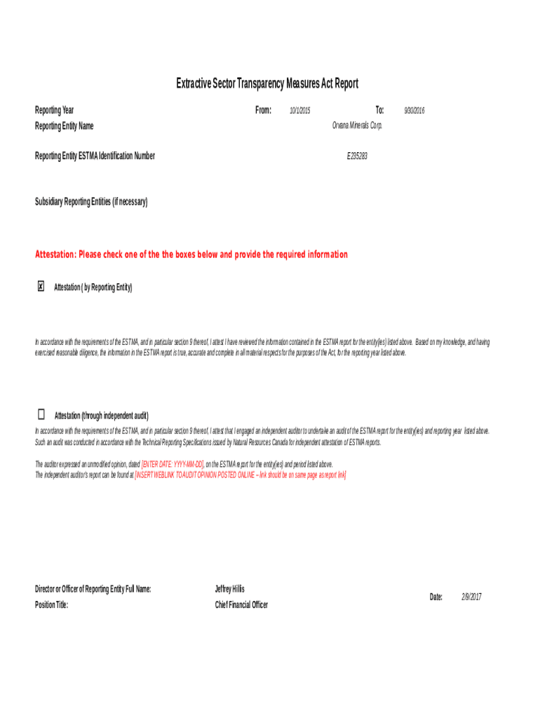 Reporting Entity Cameron:To:10/1/20159/30/2016Orvana Minerals Corp. Reporting Entity ESTIA Identification NumberE235283Subsidiary