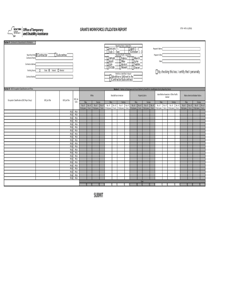 GRANTS WORKFORCE UTILIZATION REPORTED 4971G (1/2018)Section A Contractor's/ Subcontractor's Information Reporting Period Select Overreporting Entity Contractor NamePreparer's Name: January 1 March