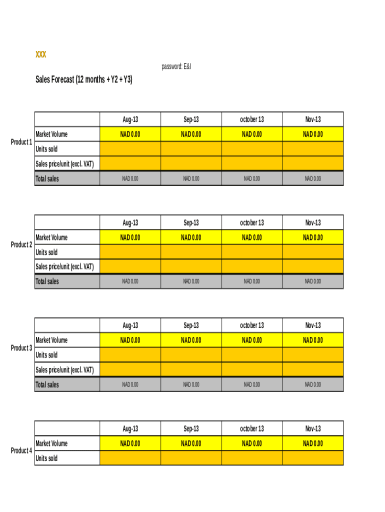 Xxx password: Epistles Forecast (12 months + Y2 + Y3)Product 1Market VolumeAug13Sep13october 13Nov13NAD 0.00NAD 0.00NAD 0.00NAD 0.00NAD 0.00NAD 0.00NAD 0.00NAD 0.00Aug13Sep13october 13Nov13NAD 0.00NAD