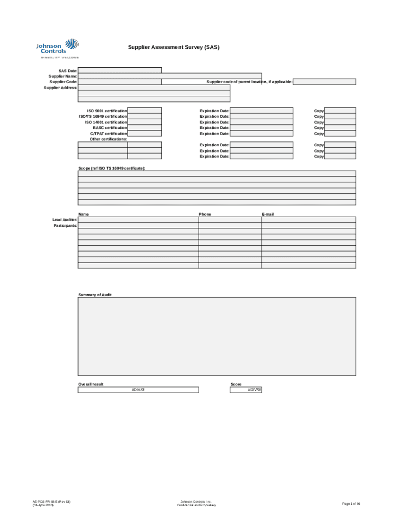 Supplier Assessment Survey (SAS)SAS Date: