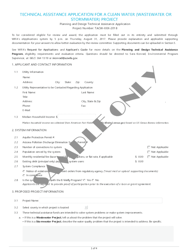 Get the free TECHNICAL ASSISTANCE APPLICATION FOR A CLEAN WATER ... - applicant azwifa