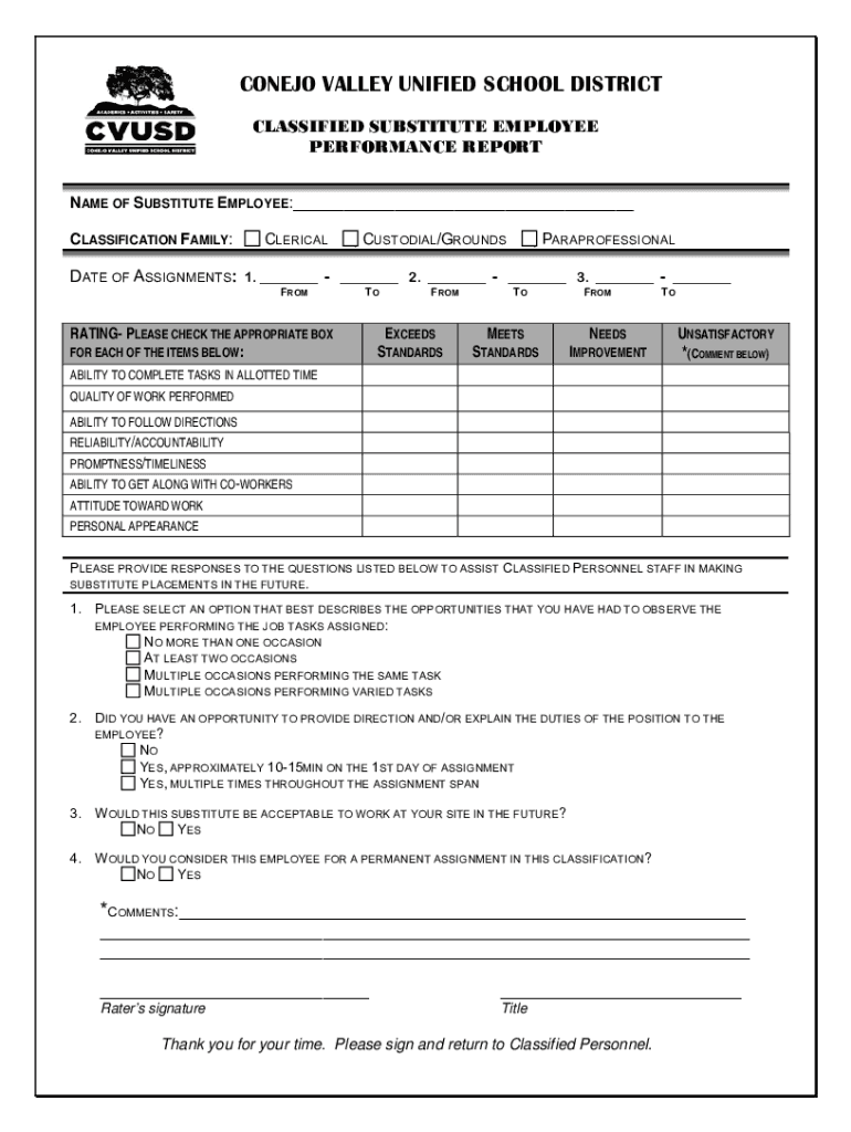 Get the free Classified Substitute Evaluation Form-revised.doc