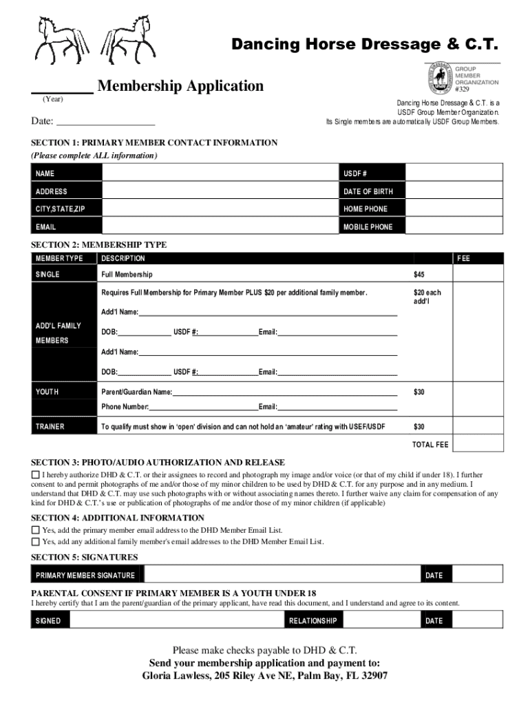 Dancing Horse Dressage & C.T. Membership Application#329(Year)Dancing Horse Dressage & C.T. is a USAF Group Member Organization. Its Single members are automatically USAF Group Members. Date: SECTION
