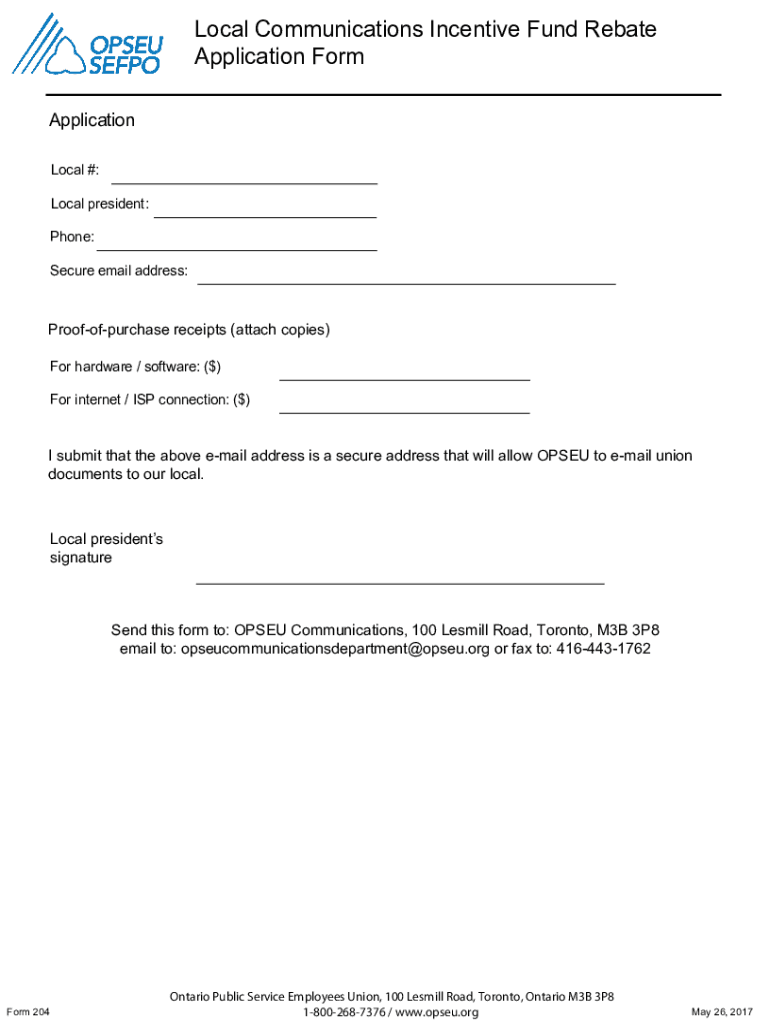 Get the free OPSEU Local Communications Incentive Fund Rebate Application Form