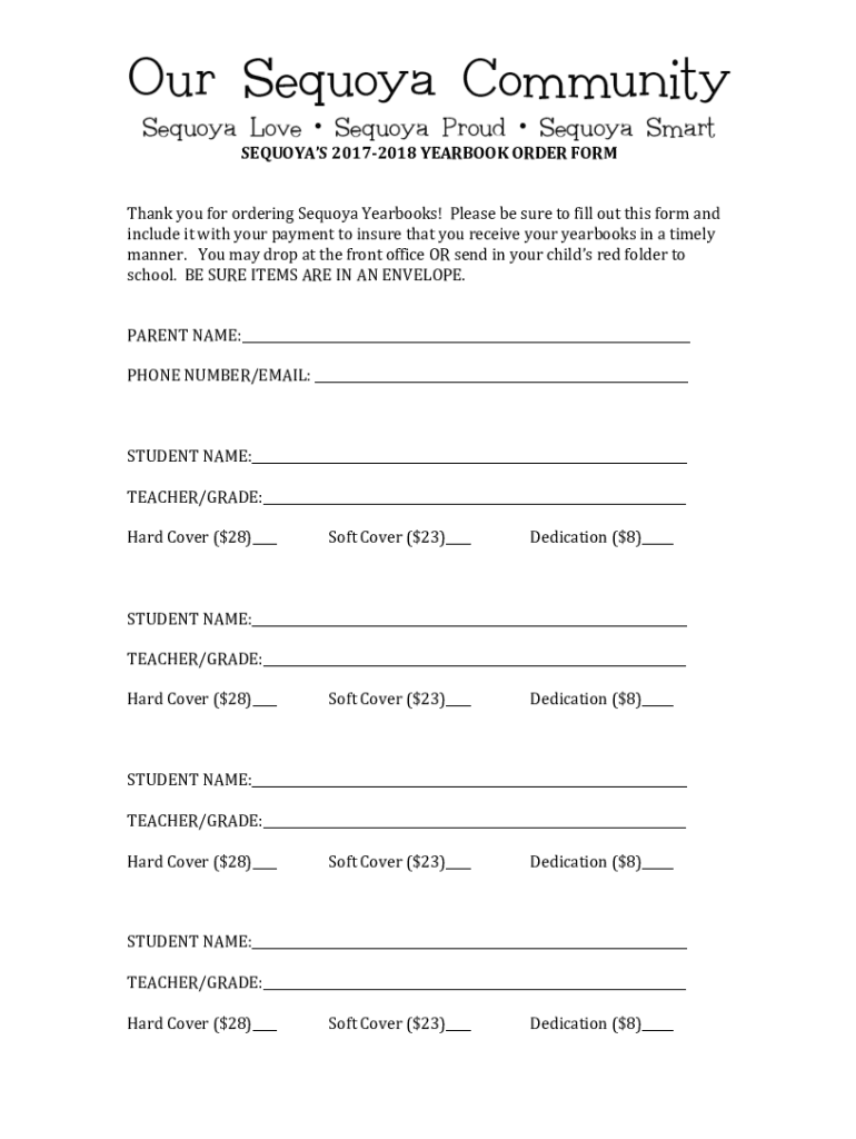 SEQUOIAS 20172018 YEARBOOK ORDER Firsthand you for ordering Sequoya Yearbooks! Please be sure to fill out this form and include it with your payment to ensure that you receive your yearbooks in a