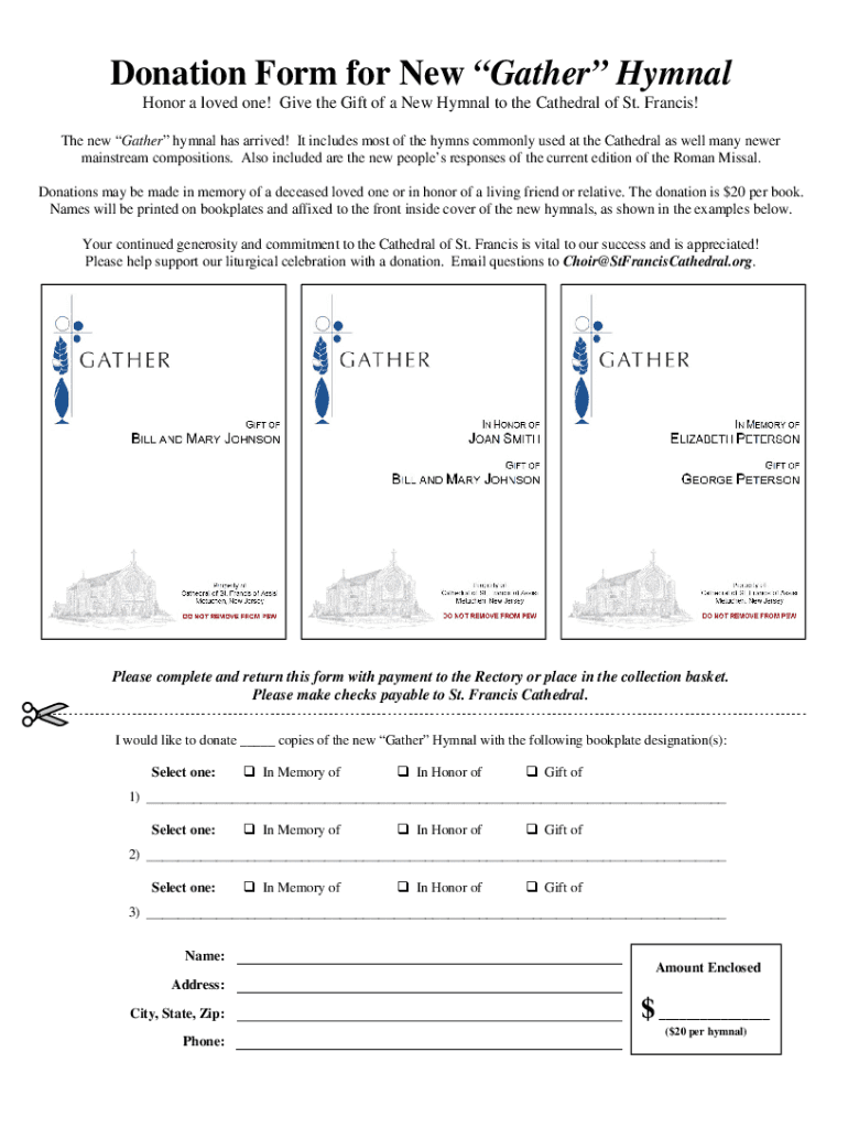 Get the free Donation Form for New Gather Hymnal - Cathedral of St. Francis of ...