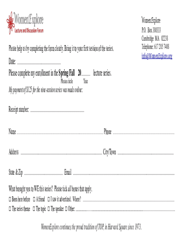 Please help us by completing the form clearly. Bring it to your first session of the series. Date: ..................................................................................................