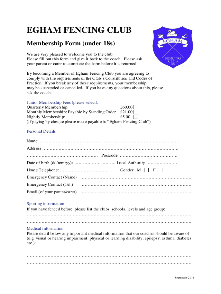 Get, Create, Make and Sign birmingham fencing clubmembership