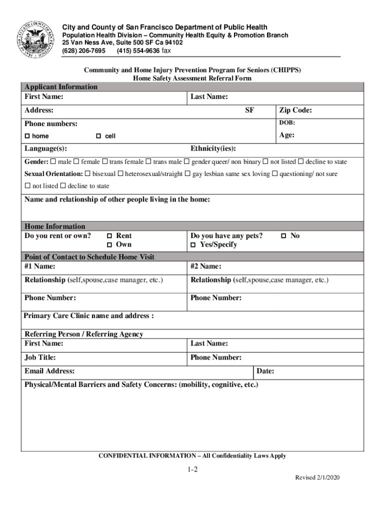 City and County of San Francisco Department of Public Health Population Health Division Community Health Equity & Promotion Branch 25 Van Less Ave, Suite 500 SF Ca 94102 (415) 5549636 fax (628) 2067695Community