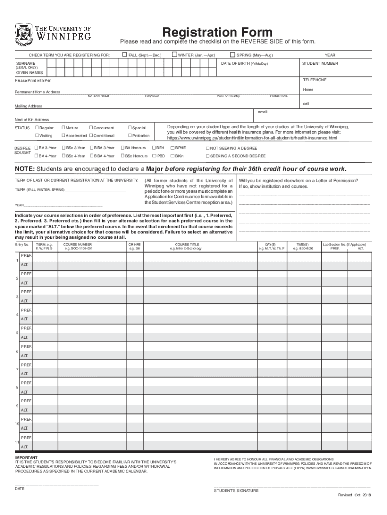 Registration Formulas read and complete the checklist on the REVERSE SIDE of this form. CHECK TERM YOU ARE REGISTERING FOR:FALL (Sept. Dec.)WINTER (Jan. Apr.)SURNAMESPRING (May Aug) DATE OF BIRTH