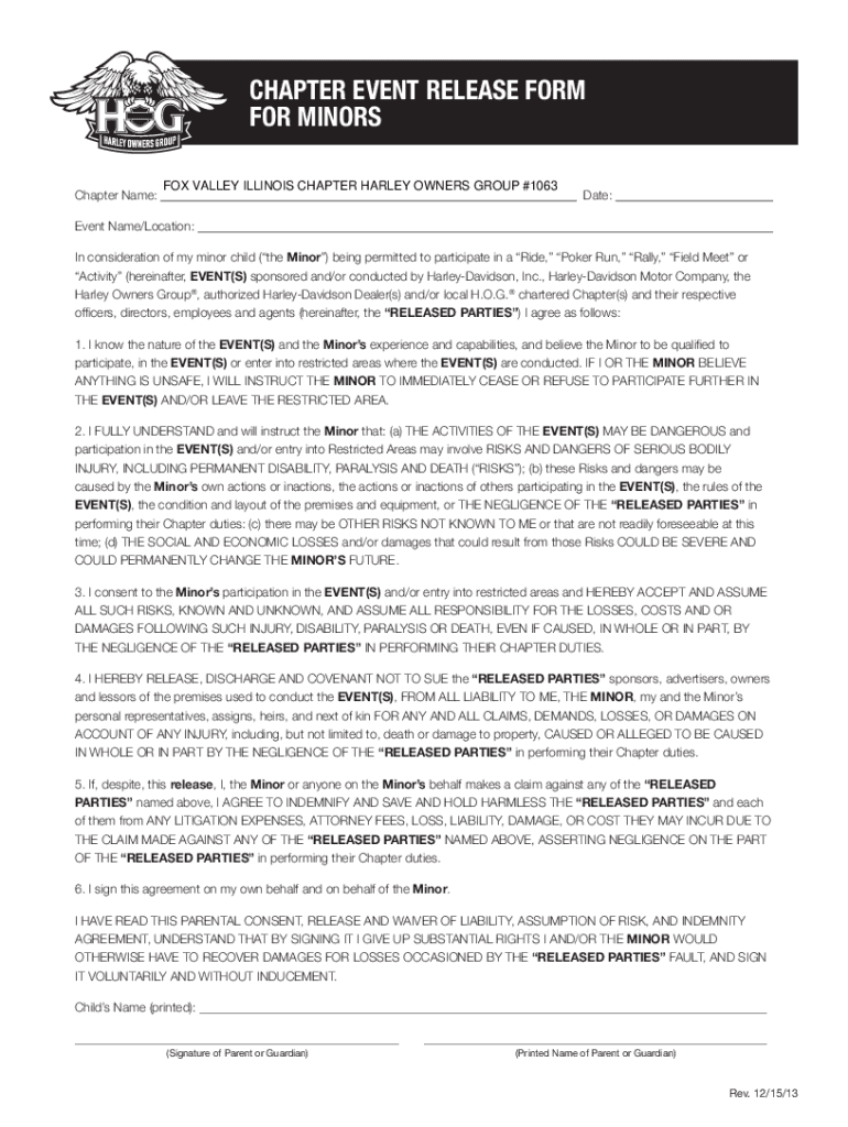 Chapter Name:FOX VALLEY ILLINOIS CHAPTER HARLEY OWNERS GROUP #1063Date:Event Name/Location: