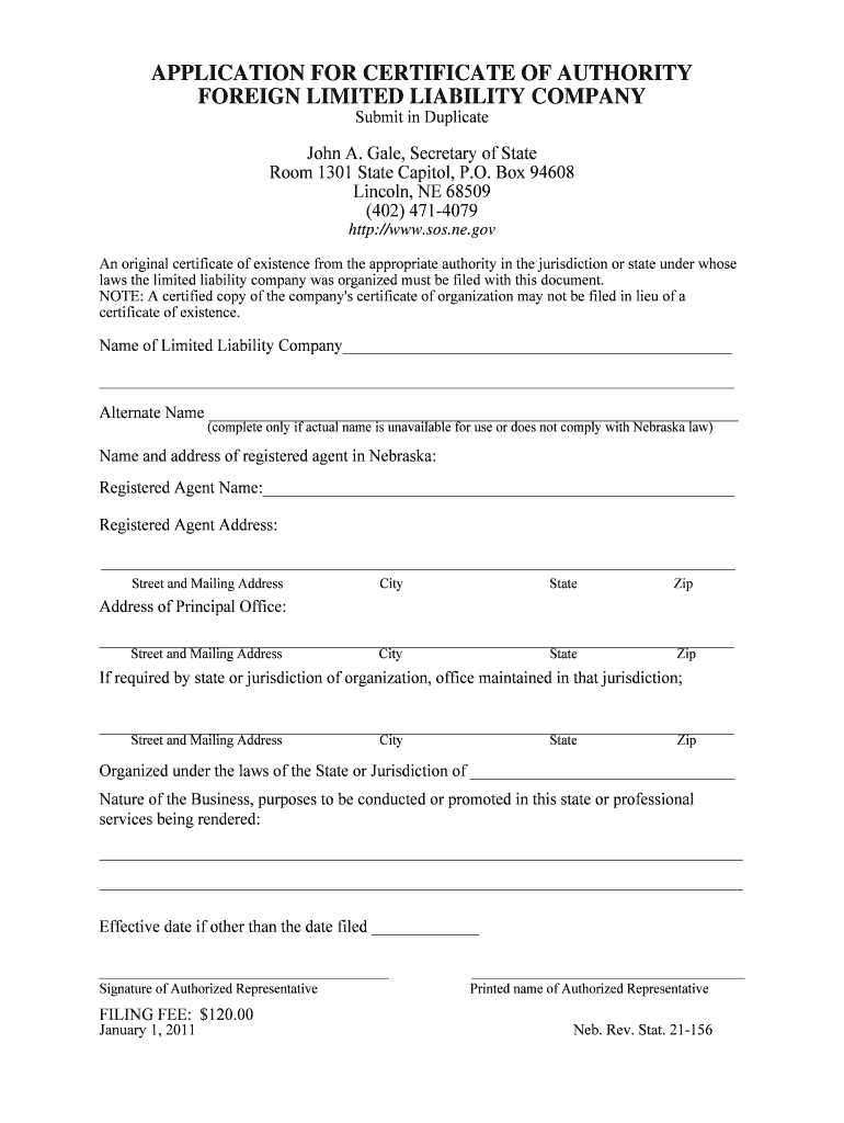 Get the free APPLICATION FOR CERTIFICATE OF AUTHORITY FOREIGN ... - sos ne