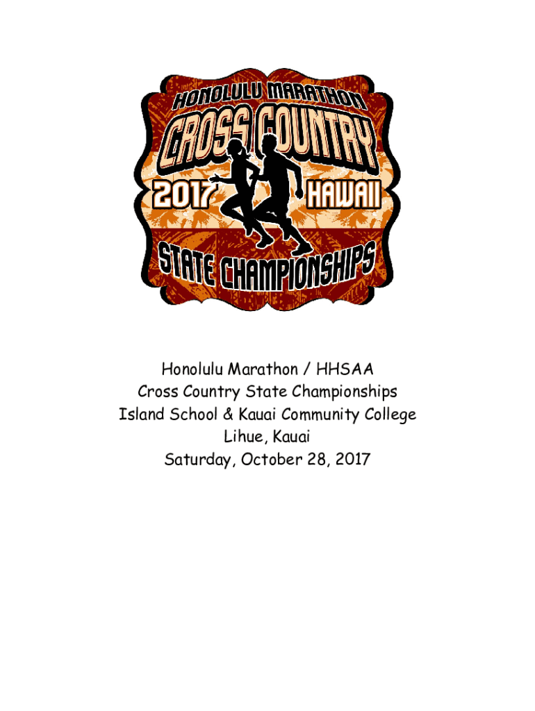 Honolulu Marathon / HHS AA Cross Country State Championships Island School & Kauai Community College Li hue, Kauai Saturday, October 28, 2017HONOLULU MARATHON HHS AA CROSS-COUNTRY STATE CHAMPIONSHIPS