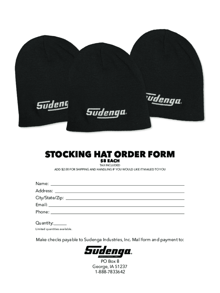 STOCKING HAT ORDER FORM $8 EACH INCLUDED ADD $2.00 FOR SHIPPING AND HANDLING IF YOU WOULD LIKE IT MAILED TO Name: Address: City/State/Zip: Email: Phone: Quantity: Limited quantities available. Make
