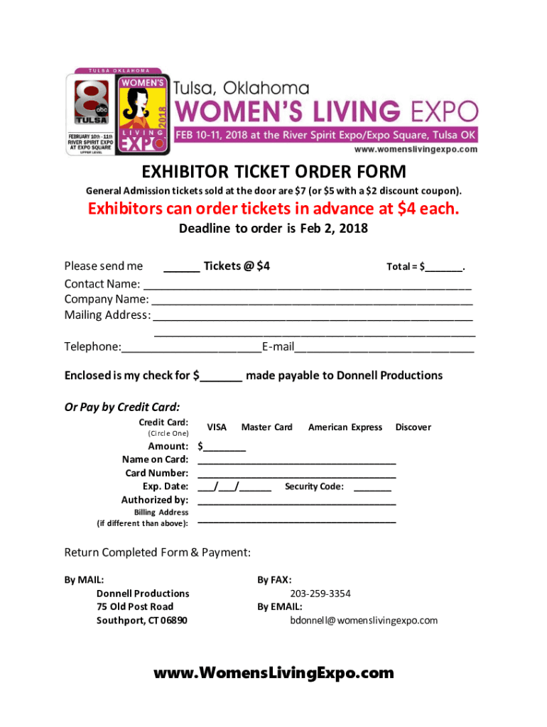Get the free EXHIBITOR TICKET ORDER FORM - Women's Expo With A Cause
