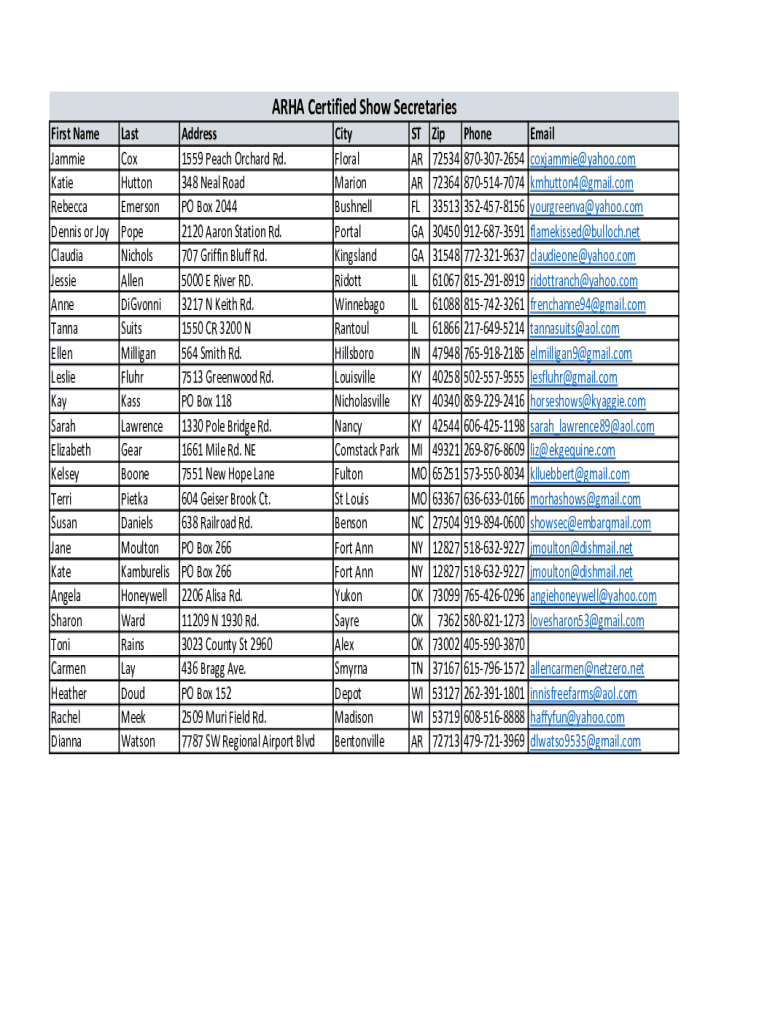 AREA Certified Show Secretaries