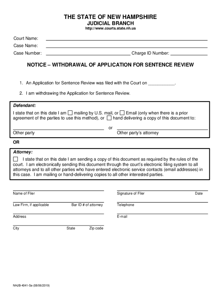 Get the free Notice of Withdrawal of Application for Sentence Review