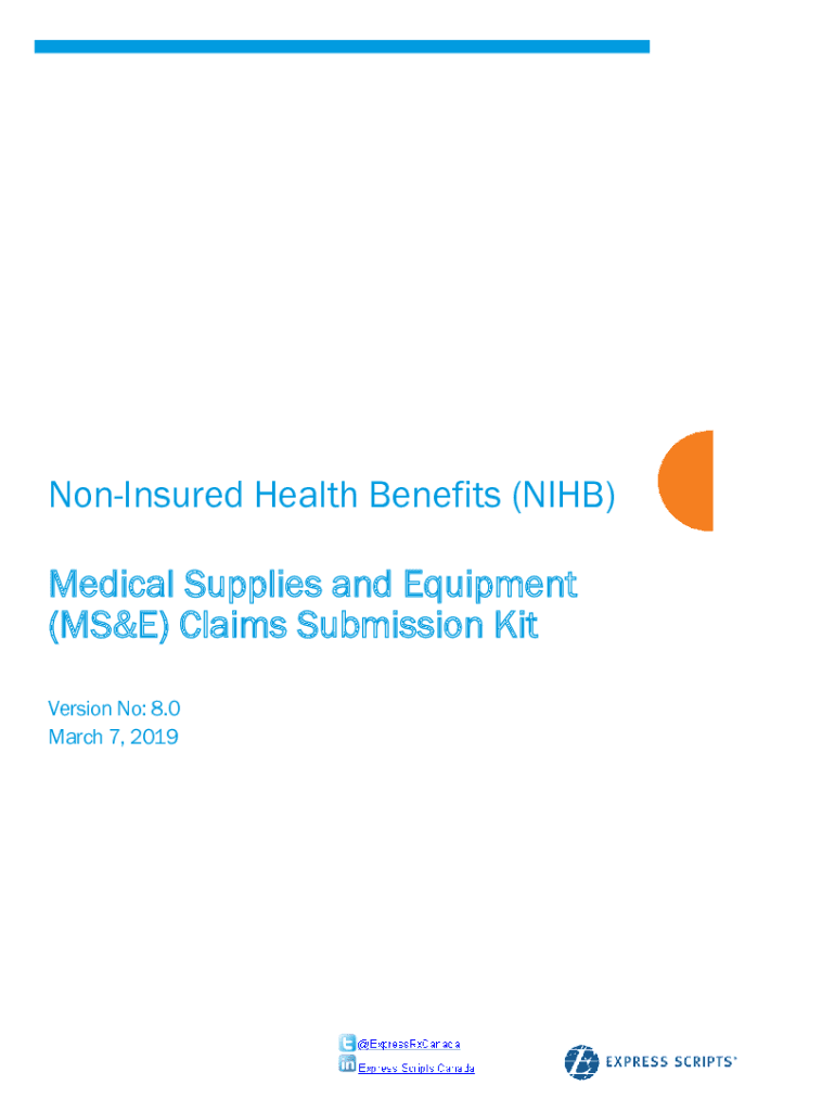 Uninsured Health Benefits (NIB) Medical Supplies and Equipment (MSDE) Claims Submission Kit Version No: 8.0 March 7, 2019NIHB Medical Supplies and Equipment (MSDE) Claims Submission Kitsch MSDE Claims