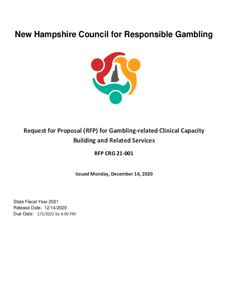 New Hampshire Council for Responsible GamblingRequest for Proposal (RFP) for Gambling related Clinical Capacity Building and Related Services RFP CRG 21001 Issued Monday, December 14, 2020State Fiscal