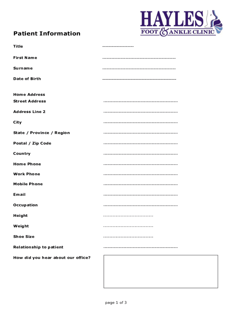 Get the free Patient Information - Hayles Foot and Ankle Clinic