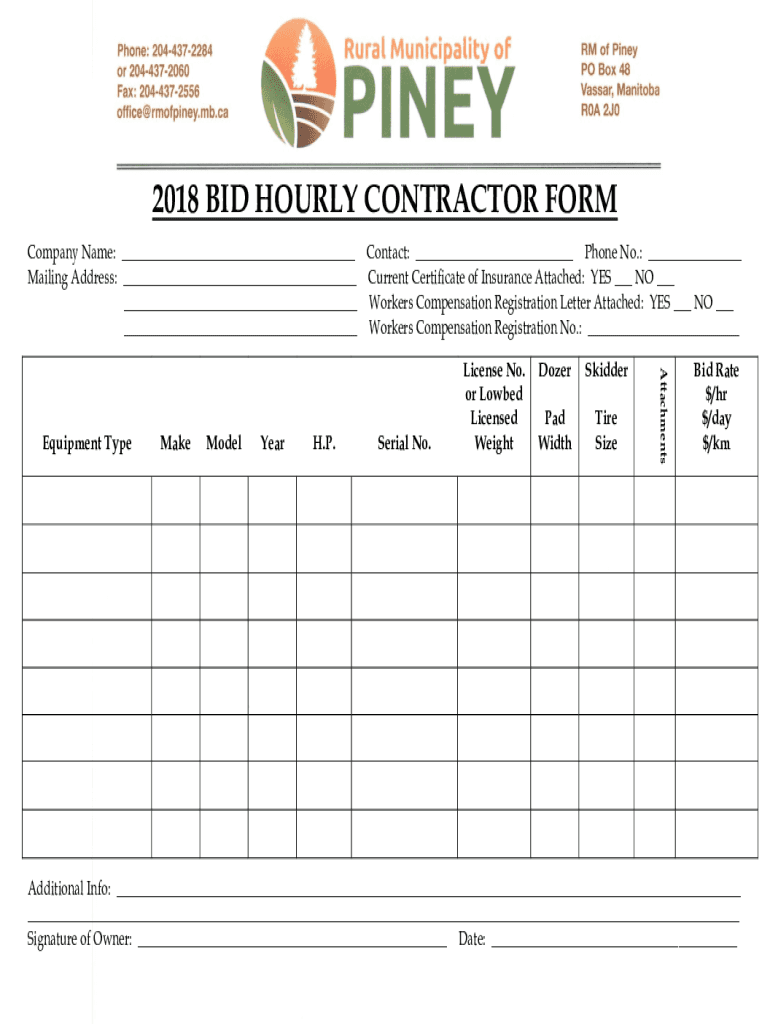 Get the free 2018 BID HOURLY CONTRACTOR FORM - rmofpiney mb