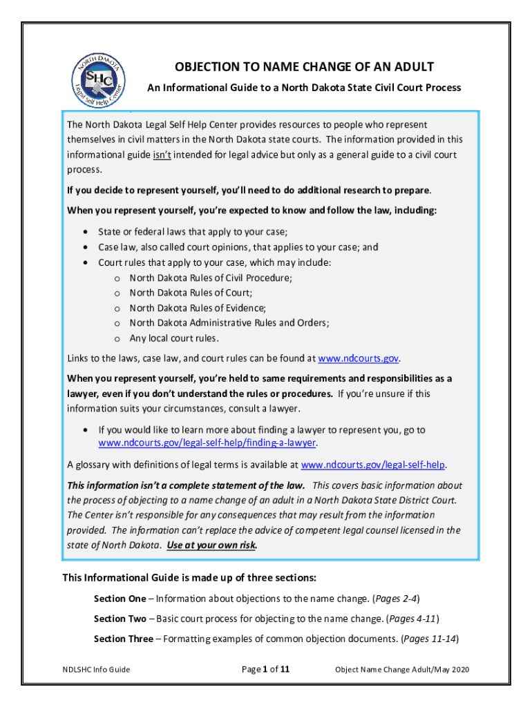 Get the free OBJECTION TO NAME CHANGE OF AN ADULT