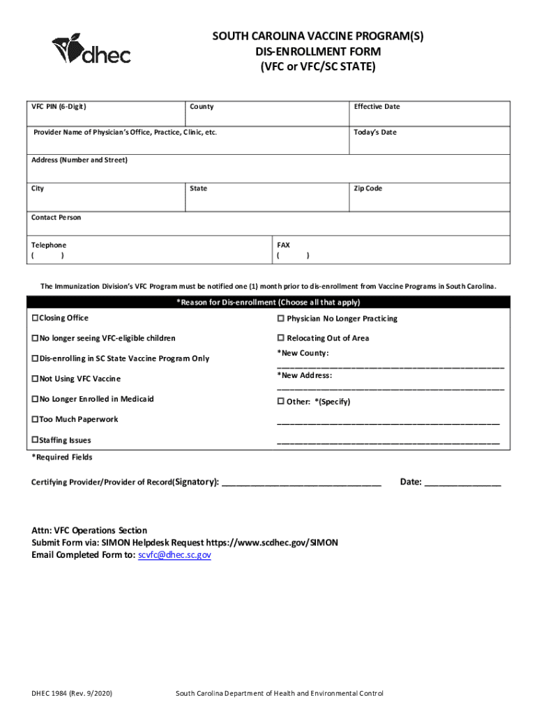 Get the free SOUTH CAROLINA VACCINE PROGRAM(S) DIS-ENROLLMENT ...