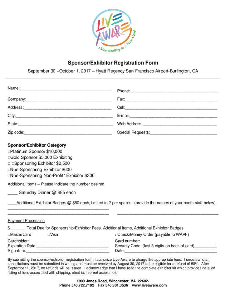 Any individual or company interested in sponsoring or exhibiting at an event needs to fill out the sponsorexhibitor registration form.