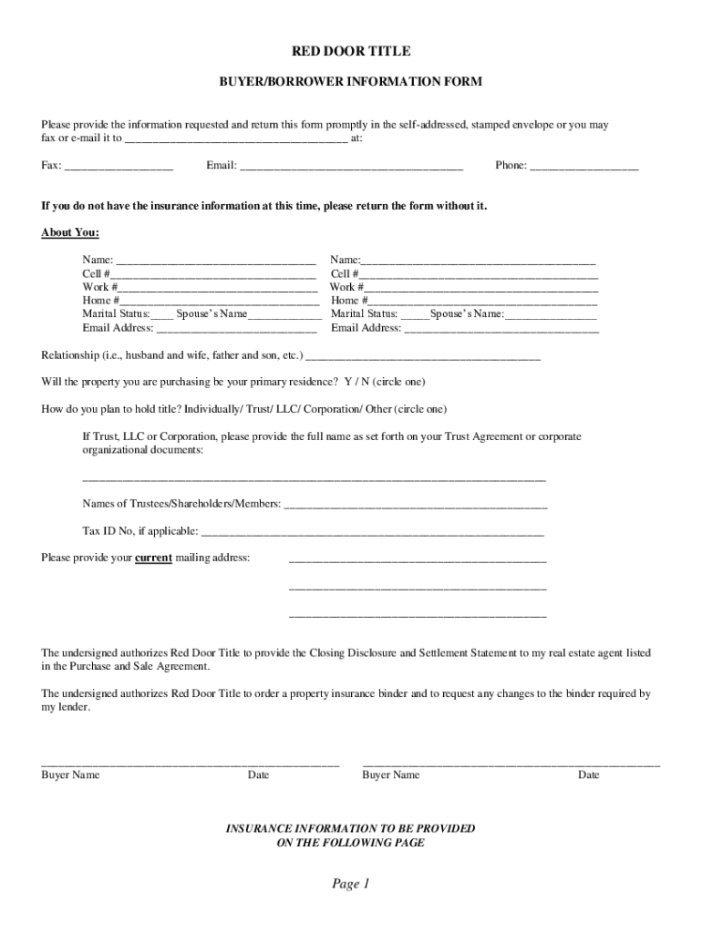 Get the free BUYER/BORROWER INFORMATION FORM - Red Door Title