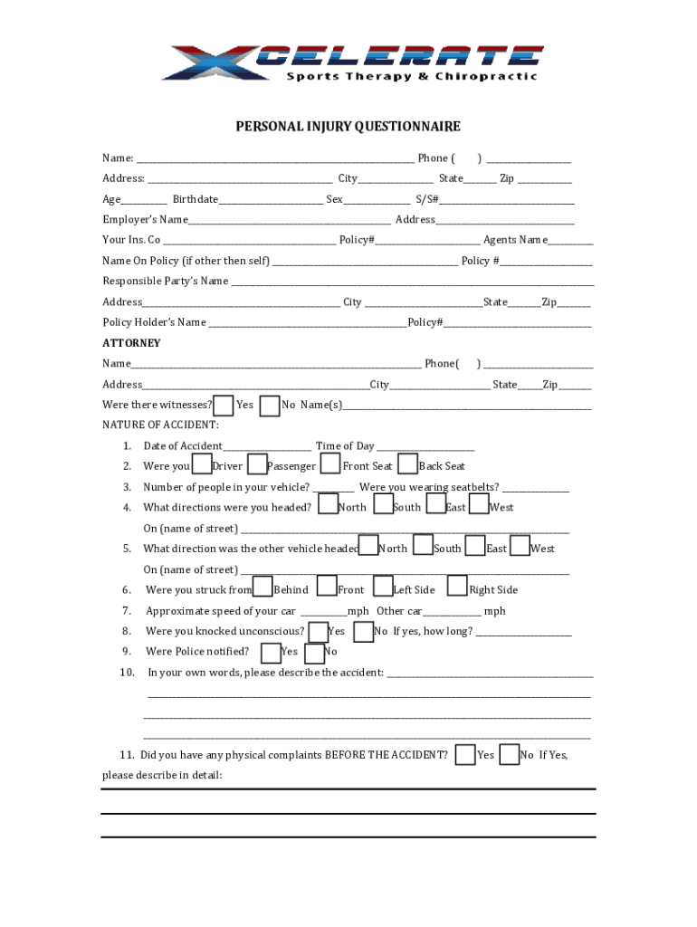 Get the free PERSONAL INJURY QUESTIONNAIRE - Holistic Health Clinic