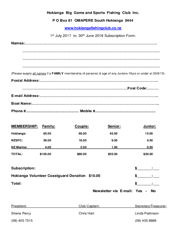 1st July 2017 to 30th June 2018 Subscription Form: