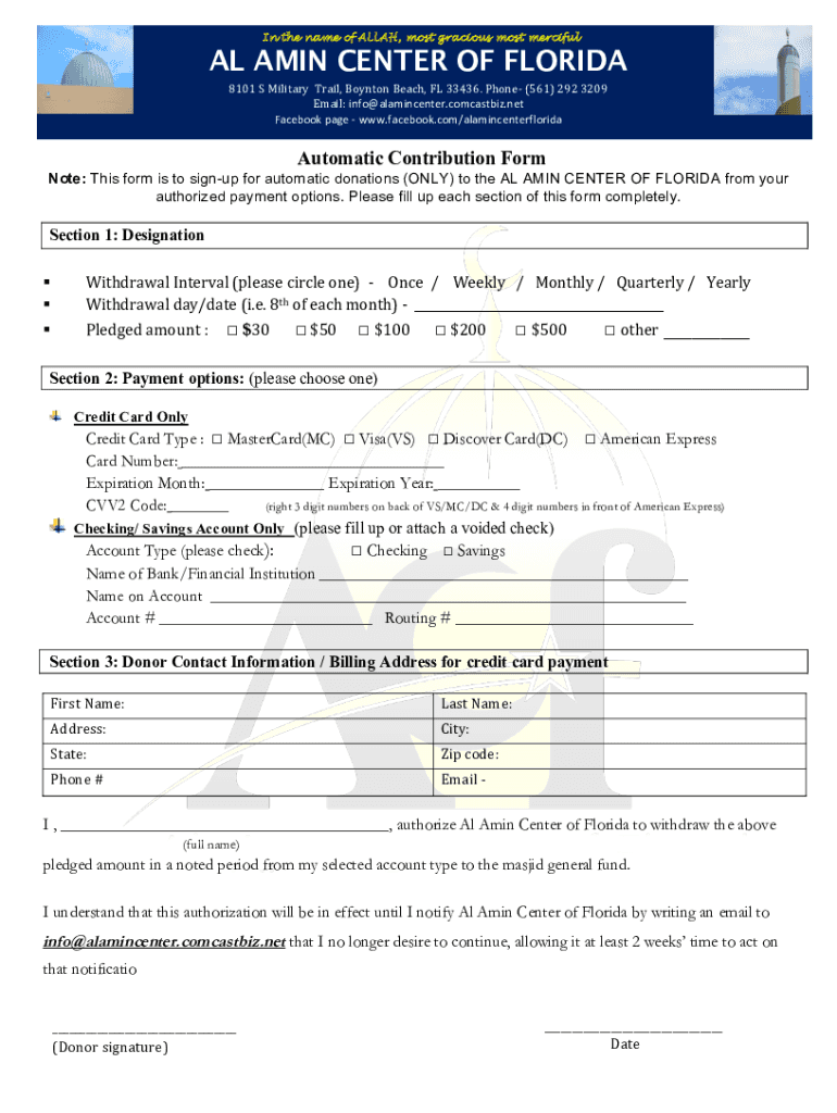 To fill out the automatic contribution formdocx, follow these steps: