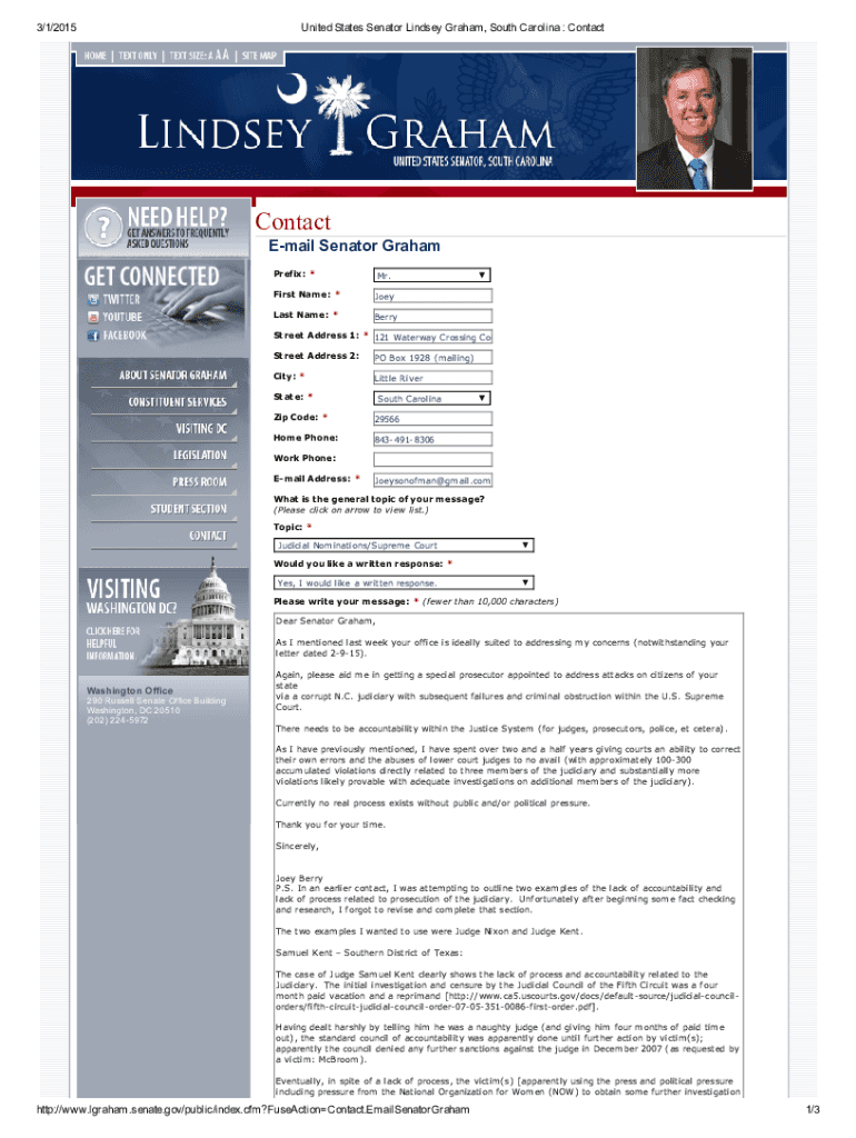3/1/2015UnitedStatesSenatorLindseyGraham,South Carolina:ContactContact