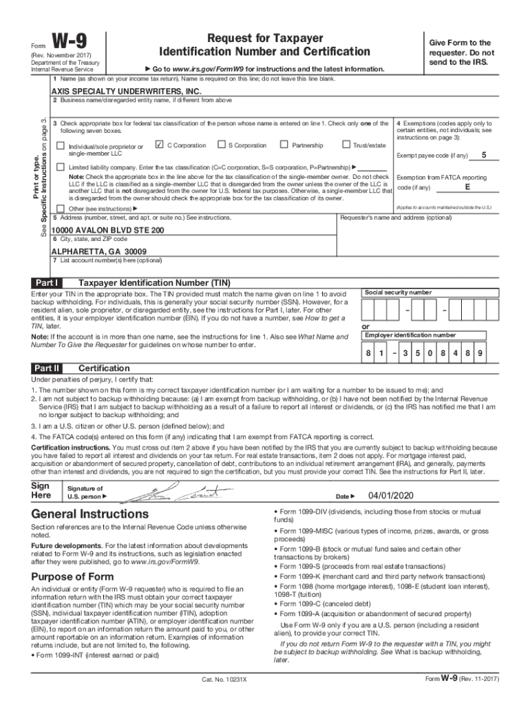 Get the free W-9 Request for Taxpayer Identification ... - axiscapital.com