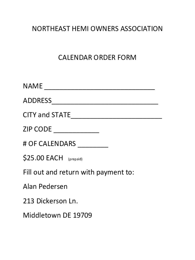 Get the free NORTHEAST HEMI OWNERS ASSOCIATION CALENDAR ORDER FORM NAME ...
