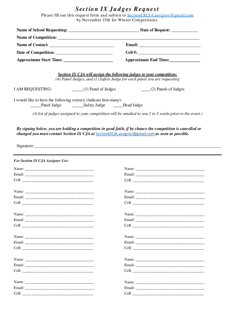 Section IX Judges RequestPlease fill out this request form and submit to SectionIXCJA.assignor@gmail.com