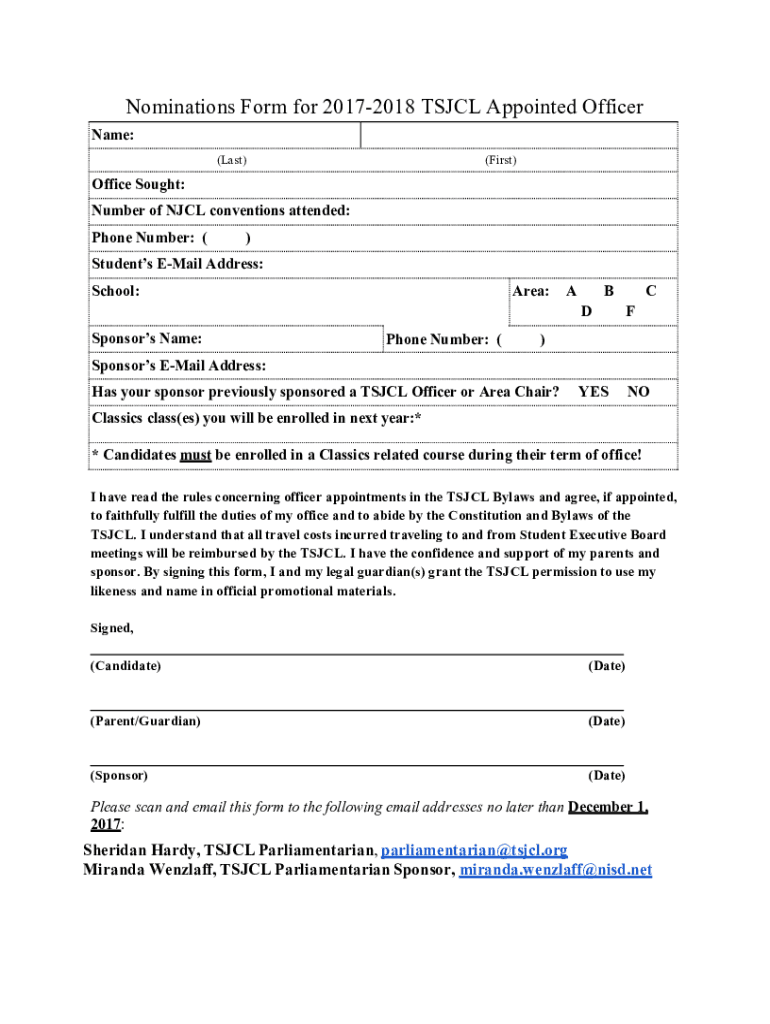 Nominations Form for 20172018 TS JCL Appointed Officer