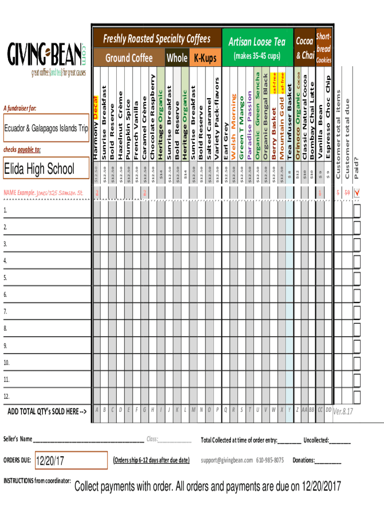 5591. 2. 3. 4. 5. 6. 7. 8. 9. 10. 11. 12.ADD TOTAL Qty SOLD HERE ABCDEFGHIJKLMNOPQRSTUVWXYZ AA BB CC Diver.8.17Sellers Name Class: Total Collected at time of order entry: Uncollected: ORDERS DUE:support