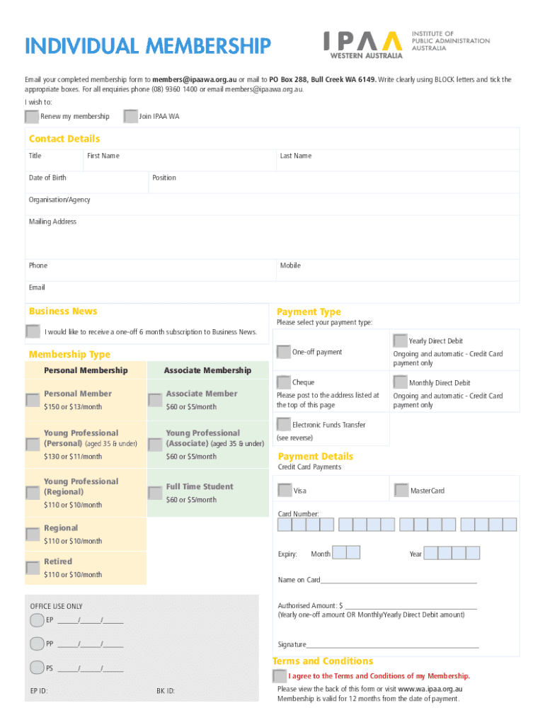 Get the free IPAA Western AustraliaPersonal and Associate Membership - wa ipaa org