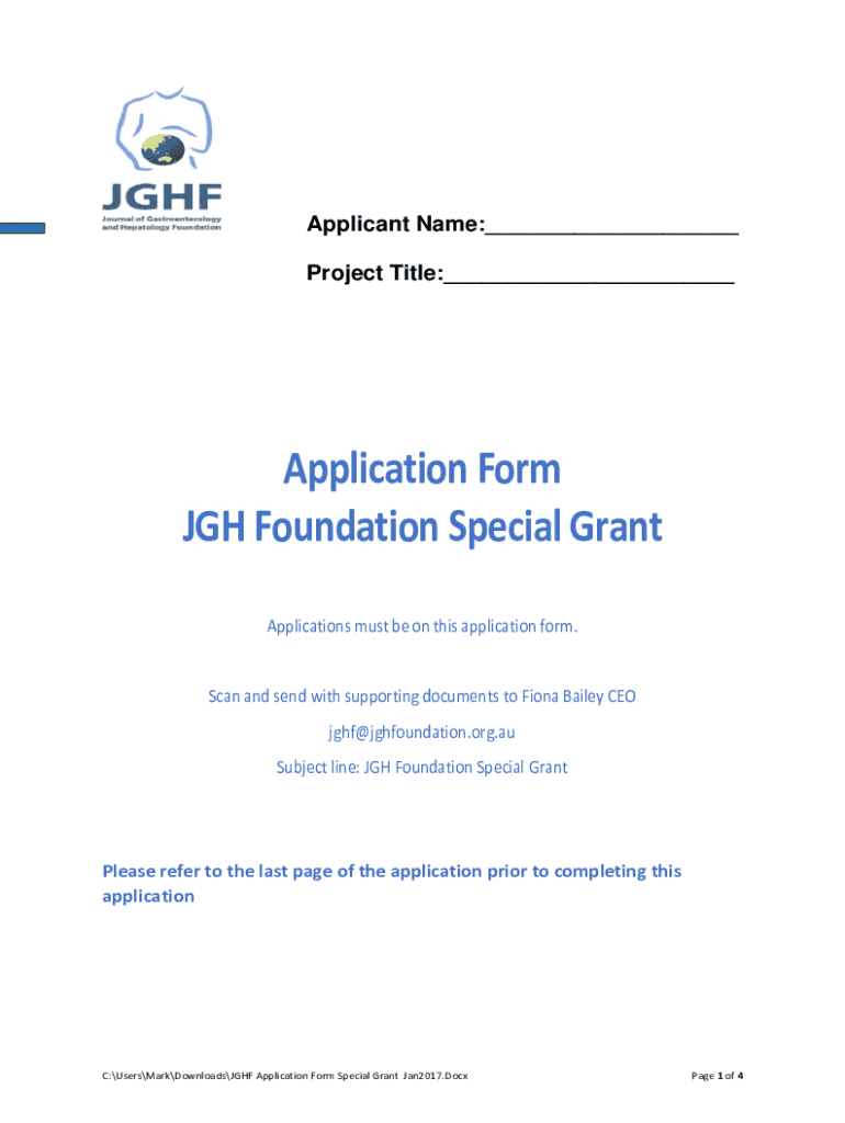 Applicant Name: Project Title: Application Form GH Foundation Special Grant Applications must be on this application form. Scan and send with supporting documents to Fiona Bailey CEO off foundation.org.AU