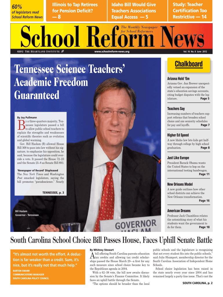 60% of legislators read School Reform News Illinois to Tap Retirees for Pension Deficit? --8 Idaho Bill Would Give Teachers associations Equal access -- 5 The Monthly Newspaper for School Reformers