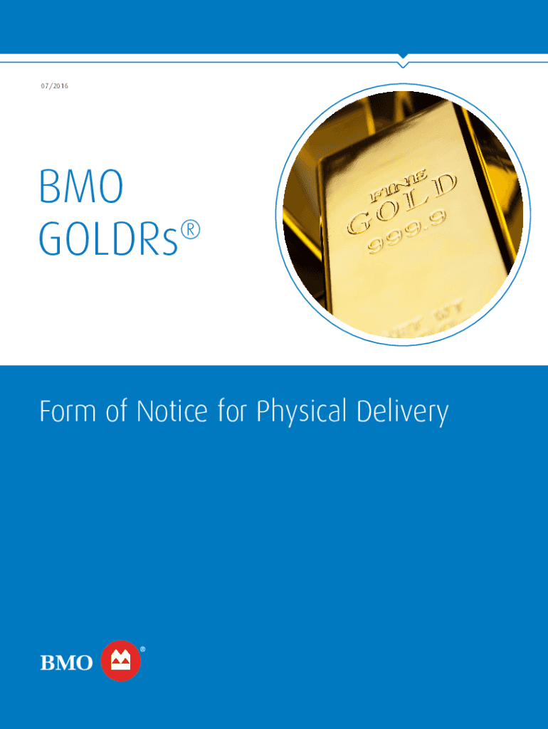 07/2016BMO Goldsboro of Notice for Physical DeliveryVaulted Gold Bullion Trust Physical Gold Bullion Redemption Form (To be completed by Authorized Participant or broker dealer on behalf of holder