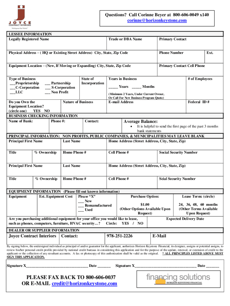 Questions? Call Corinne Beyer at 8006060049 x140 Corinne horizonkeystone.com LESSEE INFORMATION Legally Registered Namesake or DBA Preprimary ContactPhysical Address (HQ or Existing Street Address)