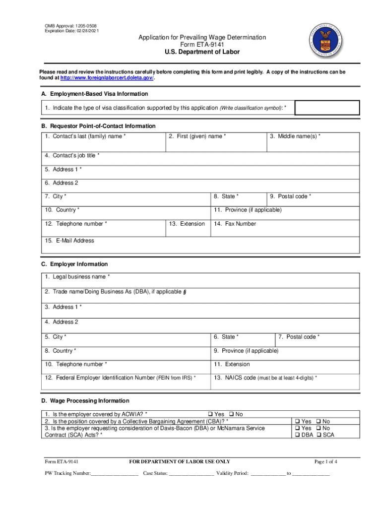 Expiration Date: 02/28/2021Application for Prevailing Wage Determination