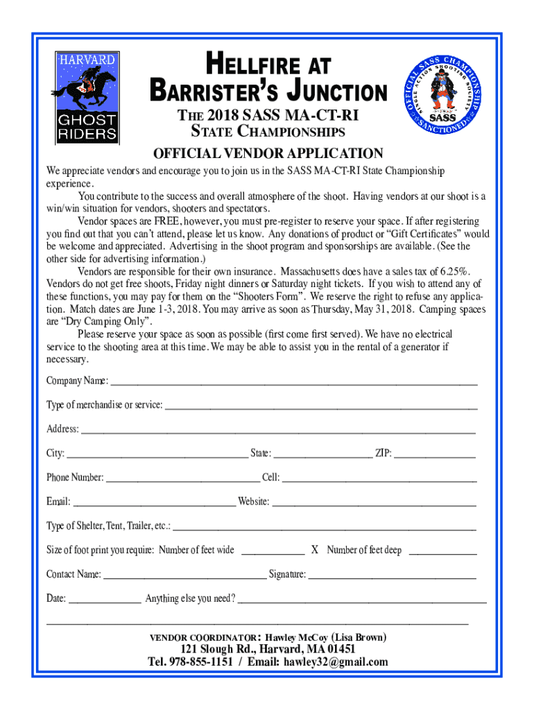 THE 2018 SASS ARISTATE CHAMPIONSHIPSOFFICIAL VENDOR Application appreciate vendors and encourage you to join us in the SASS MAC TRI State Championship