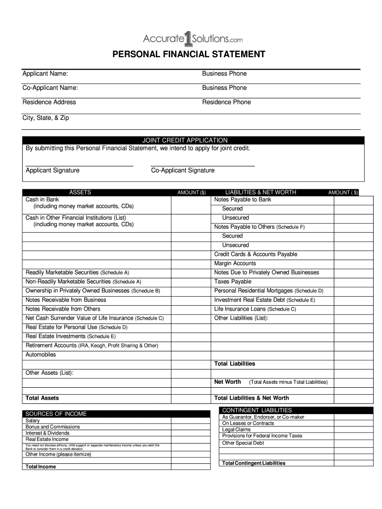 Get the free Personal Financial Statement Generic