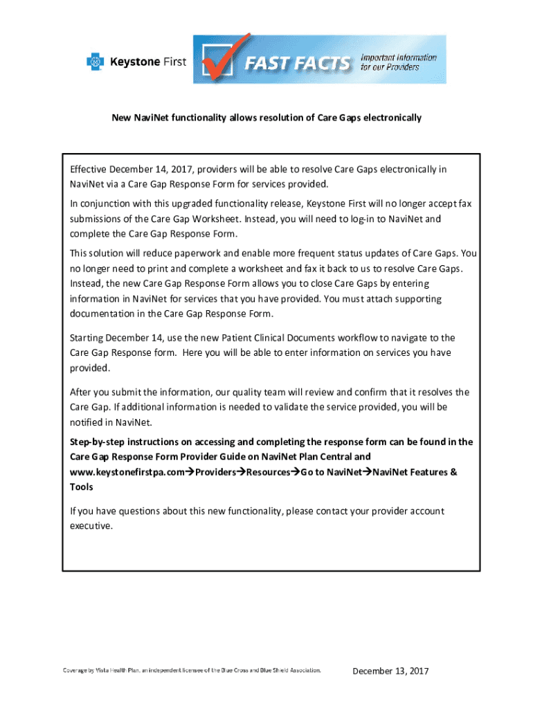 Get the free NaviNet Care Gaps Response Form - Providers - Keystone First. Care Gaps Response Form