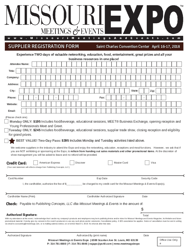SUPPLIER REGISTRATION Format Charles Convention Center April 1617, 2018Experience TWO days of valuable networking, education, food, entertainment, great prizes and all your